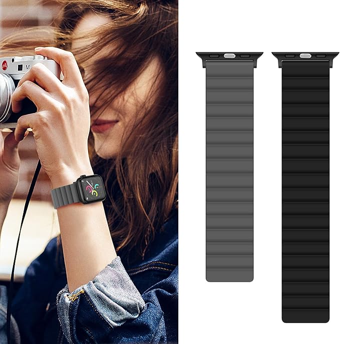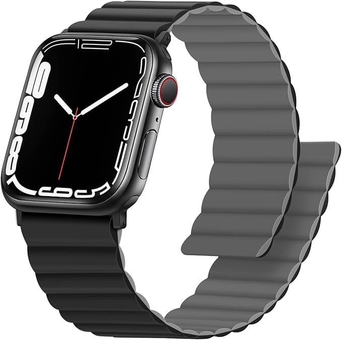 Anlinser コンパチブル Apple Watch バンド49mm 46mm 45mm 44mm 42mm、磁気両面リバーシブルアップルウォッチバンド iWatch Ultra 2/Ultra シリーズ10/9/8/7/6/5/4/3/SE 用(ブラック/グレー)
