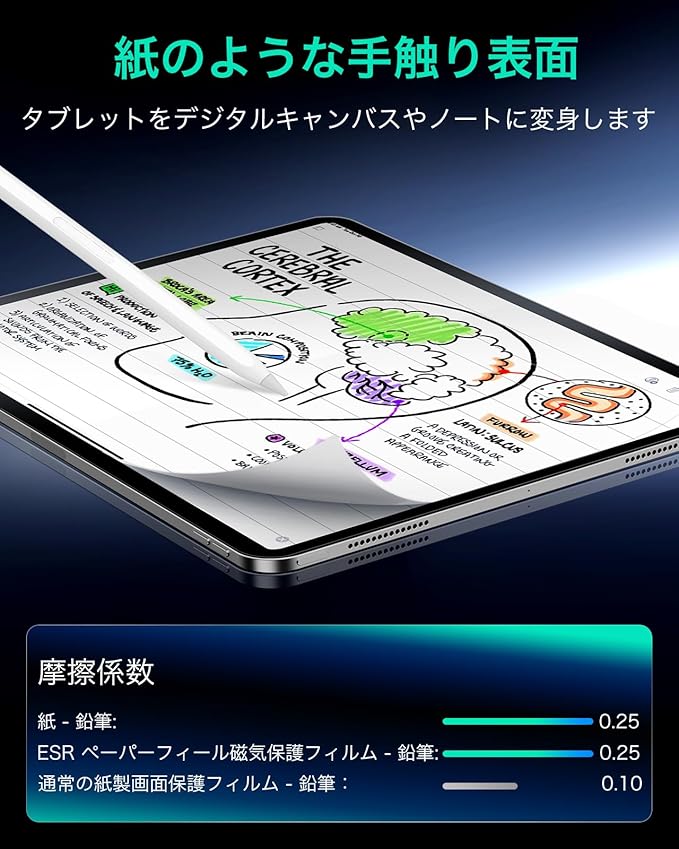 ESR iPad Air 第5世代 フィルム 2022、iPad Air 第4世代 2020、iPad Pro 11インチ(2022/2021/2020/2018)専用 ペーパーライクフィルム 着脱式 マグネットスクリーン保護フィルム 紙のような描き心地保護フィルム 再利用可能 強化フィルムと互換性あり マット仕上げ