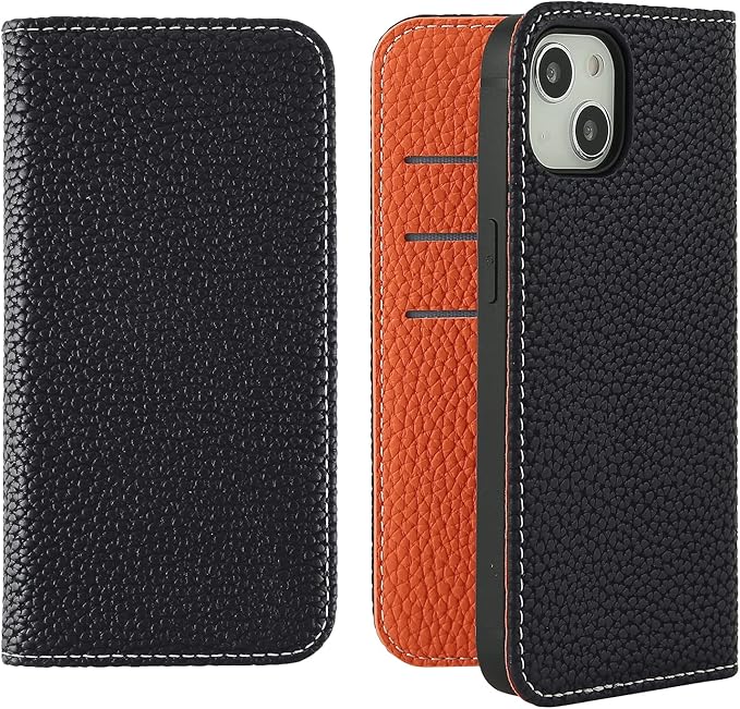 HanaRo iphone13 ブラック×オレンジ バイカラー 手帳型ケースくすみカラー iphone13ケース 手帳型 iphone13 ケース 携帯ケース