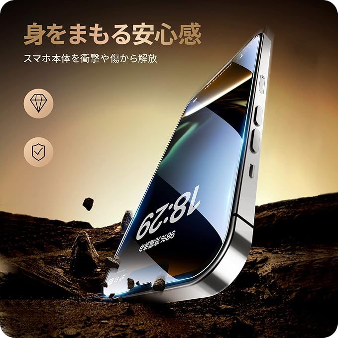 【9H硬度】 9H硬度ガラスを採用し、ハードコーティング技術により外部からの衝撃を吸収し、画面へのダメージを可能な限り抑えます。飛散防止加工により万一割れてもガラス破片が飛び散りにくいです。