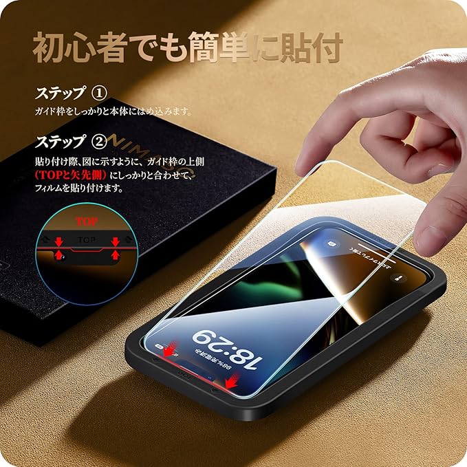 【貼り付け簡単】 専用の貼り付けガイド枠が同梱されています。ガイド枠を利用することで、本体とフィルムがズレることなく、だれでも簡単にフィルムを貼ることが可能です。また、フィルム自体のシリコン自己吸着層により、位置を合わせて上か