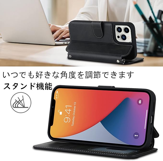 Havaya iPhone13Proケース iphone 13pro ケース スマホケース iphone 13pro 米軍MIL規格 軽薄 手帳型 ストラップ 耐衝撃 レンズ保護 (アイフォン13プロ/あいふぉん13Pro/いphone13Pro/アイホン13プロ 6.1