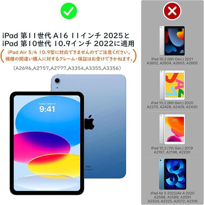 「iPad 10.9 ケース 2022」 2022年発売の新モデルiPad 第10世代 10.9インチに専用タブレットケースです(モデル番号:A2696/A2757/A2777)。iPad Air 10.9 第5/4世代、又は他の機種・モデルに対応できませんので、ご購入前に、機種・モデル番号をご確認ください。ご注意:モデル番号の確認は端末本体の背面カバーにチェックしてください。