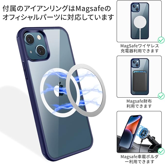 【軍用級360°全身保護・信号干渉なし】iPhone 14 Plus Magsafe ケースはSGSの落下防止認証を取得し、両面強化ガラスとソフトTPUバンパーで作られています。通常の金属バンパーと異なり、TPUの材質は携帯電話の信号を遮ることがなく、柔らかいTPUはより強力な耐衝撃性を提供することができる。iPhone 14 Plus Magsafe ケースは全面的な保護ができて、取り付け方も簡単です。iPhone 14 Plusのスクリーンに傷つかないように 、iPhone 14 Plus