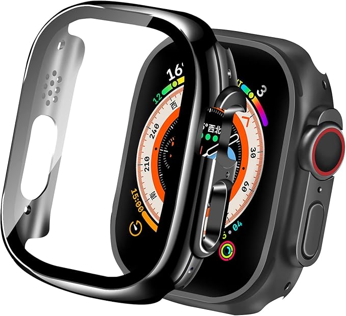 BELIYO Apple Watch ケース 49mm 対応 アップルウォッチ カバー 一体型 光沢式 Apple Watch カバー 全面保護 二重構造 アップルウォッチ ケース PC素材 日本旭硝子材 キズ防止 軽量 強化ガラス Apple Watch Ultra2/Ultra アップルウォッチウルトラ2/ウルトラ 対応(49mm,ブラック)