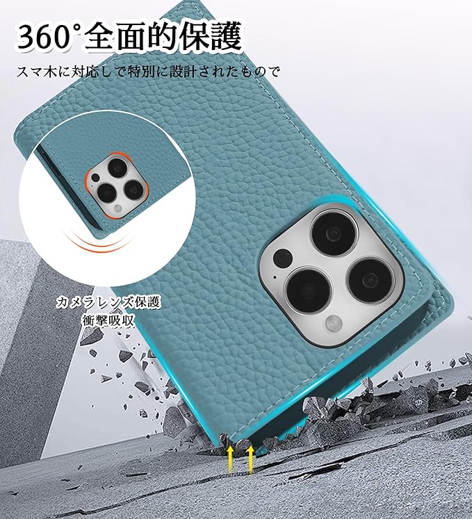 Clicsun iPhone14 Pro ケース 高級牛本革ケース 手帳型 iPhone14 Pro カバー 本革 レザー アイフォン14 Pro カバー スタンド機能 ストラップ付き マグネット式 カードポケット ギフトボックス付き ブル