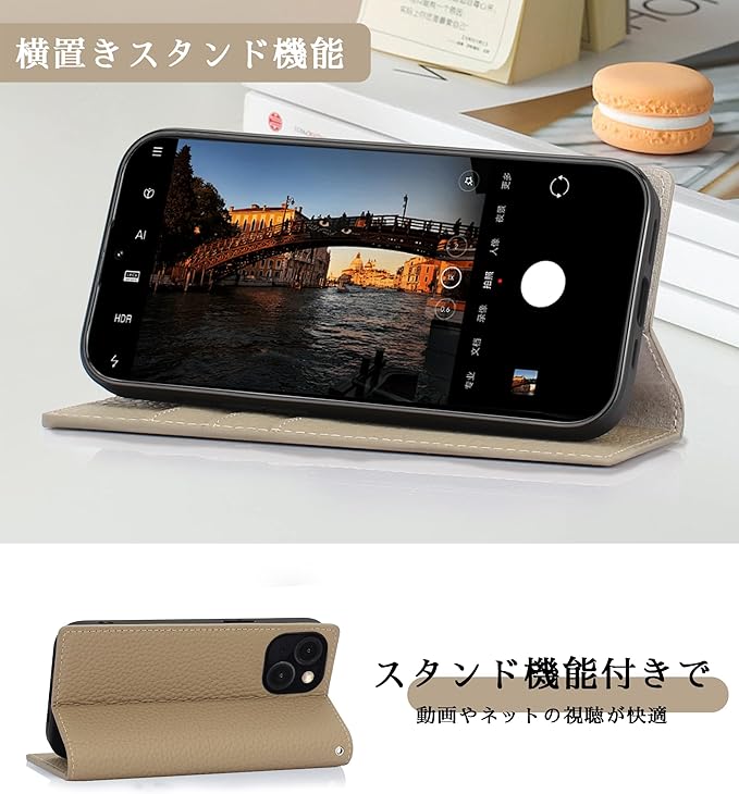 Clicsun iPhone14 ケース 高級牛本革ケース 手帳型 iPhone14 カバー 本革 レザー アイフォン14 カバー スタンド機能 ストラップ付き マグネット式 カードポケット ギフトボックス付き グレー