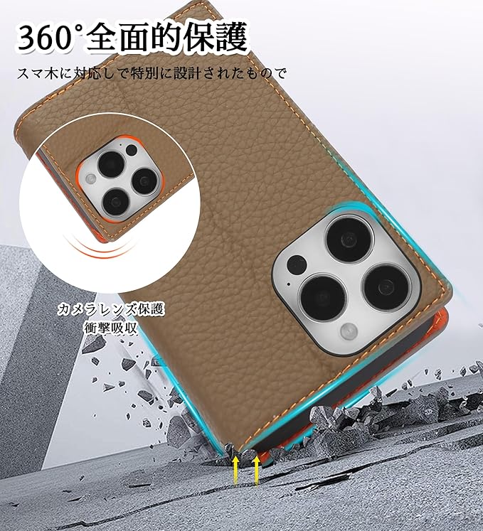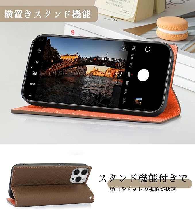 CLICSUN iPhone14 Pro 対応ケース 高級牛本革ケース 手帳型 iPhone14 Pro 対応カバー 本革 レザー アイフォン14 Pro 対応カバー スタンド機能 ストラップ付き マグネット式 カードポケット ギフトボックス付き ブラウン