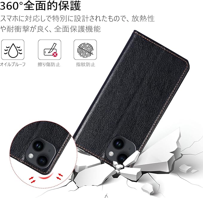 【全面保護】iPhone 14 用 ケース 手帳型る高品質のPUと柔軟なTPU素材採用しており、放熱性や耐衝撃が良く。傷や埃を防ぐことができるiPhone14 ケースです。滑りにくく、指紋、油分などもつきにくく、手帳型ならではの全面保護機能で