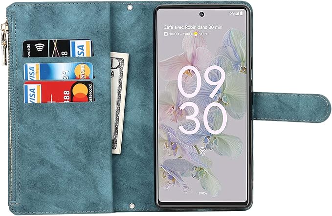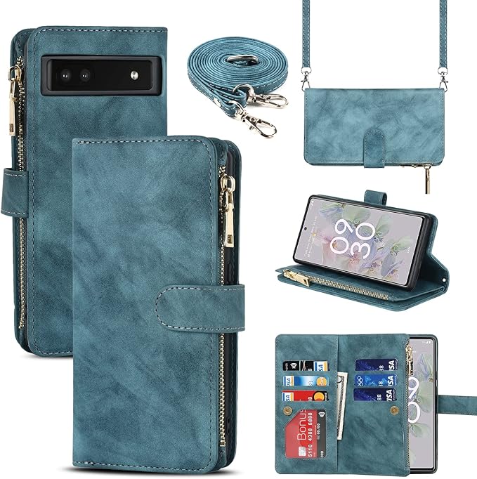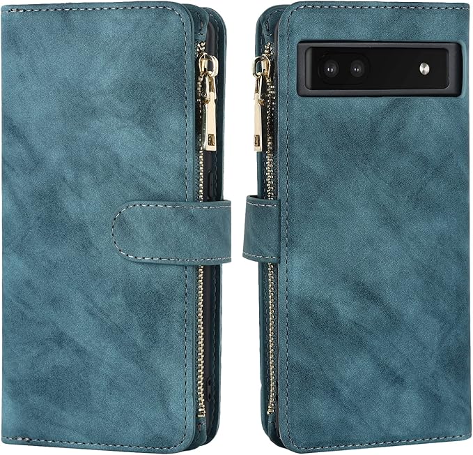 Sailortech Google Pixel 6a 5G ケース 手帳型 google pixel 6a ケース ピクセル 6a カバー合成PUレザー 財布型 内蔵マグネット 留め具装備 スマホケース カード収納 横置きスタンド 機能 小銭入れ ジッパーポケット付き 全面保護 耐久性 耐衝撃 防塵 マグネット式 グーグル ピクセル6a 適応 携帯カバー【選べる6色】6.1in-ライトブルー