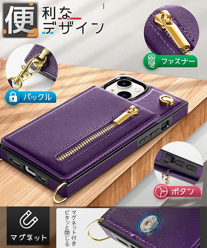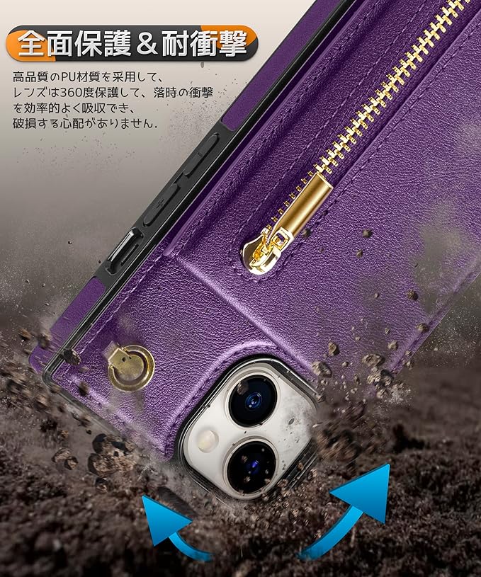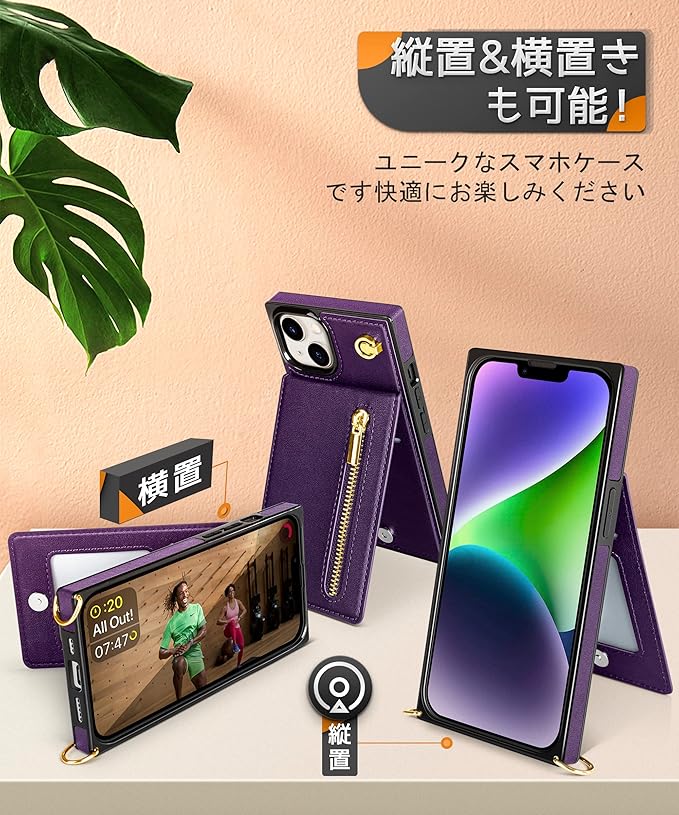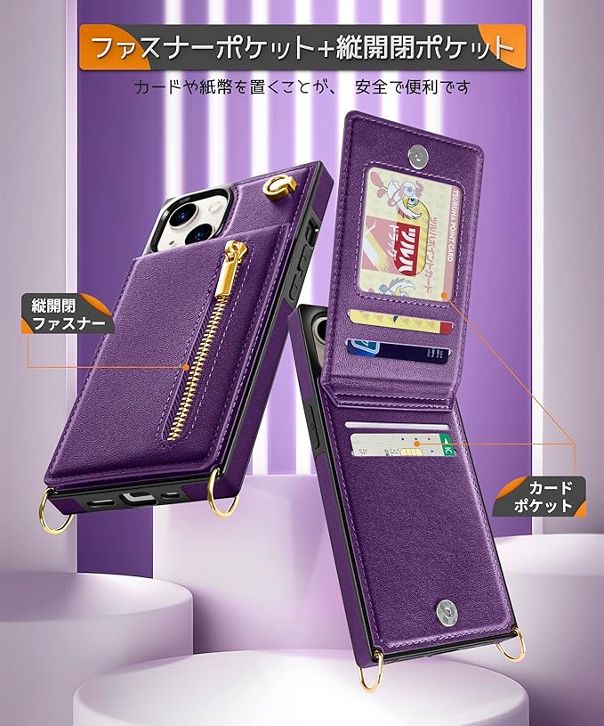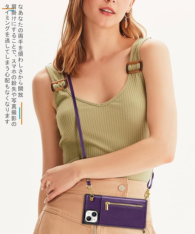 YIHARA iphone 14 ケース手帳型 iphone 14 スマホ ケース 財布型 iPhone 14 適用 携帯ケース 肩掛け 首かけ 斜めがけ ショルダー アイフォン14ケース手帳型 背面 カード収納 ストラップ付き 上下開 長さ調整可能 パープル