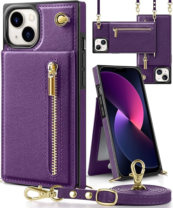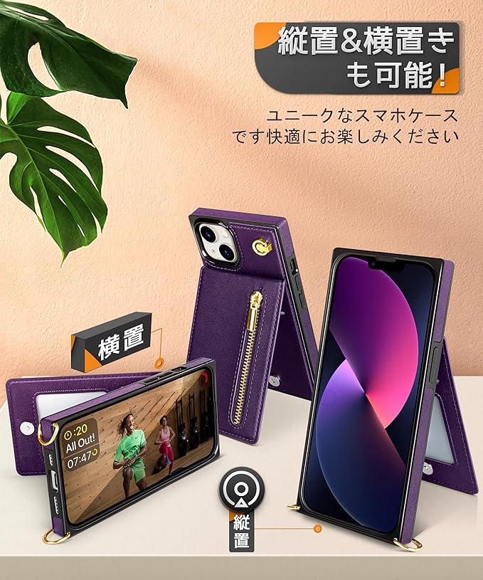 YIHARA iphone 13 ケース手帳型 iphone 13スマホ ケース 財布型 iPhone 13適用 携帯ケース 肩掛け 首かけ 斜めがけ ショルダー アイフォン13 ケース手帳型 背面 カード収納 ストラップ付き 上下開 長さ調整可能 パープル