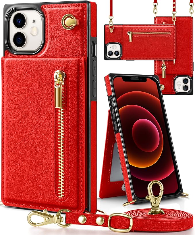 YIHARA iphone 12 mini ケース手帳型 iphone 12 mini スマホ ケース 財布型 iPhone 12 mini 適用 携帯ケース 肩掛け 首かけ 斜めがけ ショルダー アイフォン 12 mini ケース手帳型 背面 カード収納 ストラップ付き 上下開 長さ調整可能 レッド
