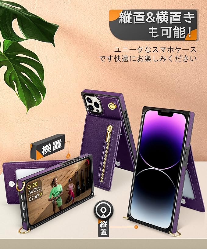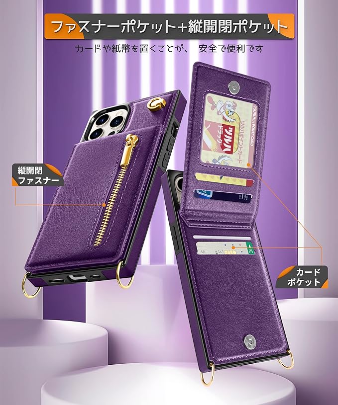 YIHARA iphone 14 Pro Max ケース手帳型 iphone 14 Pro Max スマホ ケース 財布型 iPhone 14 Pro Max 適用 携帯ケース 肩掛け 首かけ 斜めがけ ショルダー アイフォン14 Pro Maxケース手帳型 背面 カード収納 ストラップ付き 上下開 長さ調整可能 パープル
