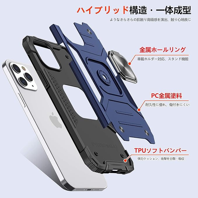 【衝撃吸収】高品質なPC+TPU、ケース四隅、内側の加工で衝撃に強く、耐久性に優れた、られているため丈夫で柔軟性があり、着脱しても傷付けにくいし、擦り傷有効的防止し、ソフトな素材感と耐久性が特徴あり、落下時の衝撃を軽減する設計。