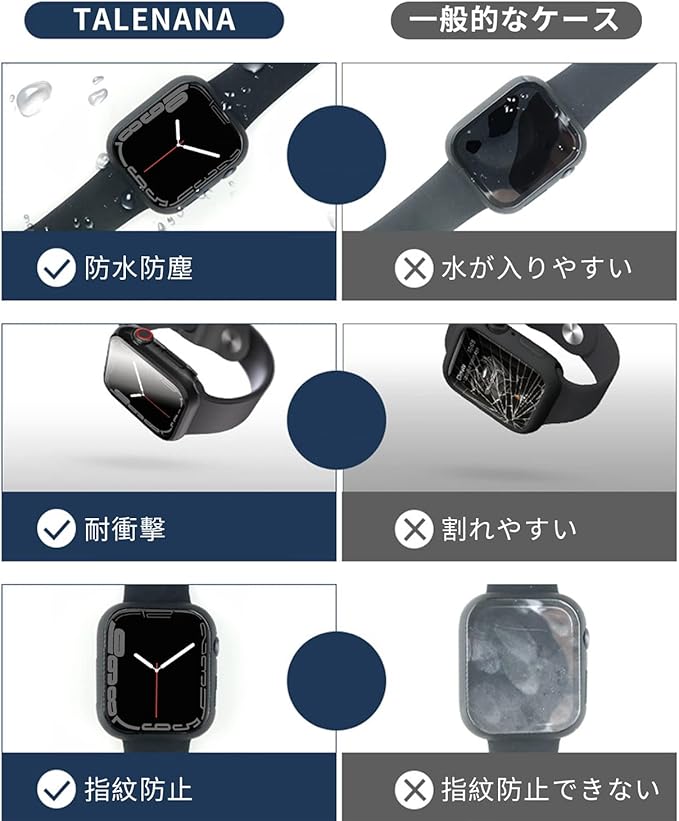 「優れた防水防塵機能」超防水性能と耐衝撃性能を持ち、水、汚れの全てからApple Watchをしっかりと保護します。粉塵も完全にシャットアウト。海、お風呂、アウトドア、プールでスマートウォッチをお楽しみ頂けます。(日常生活での汗や洗顔のときの水滴、雨などに耐えられるものですが、水仕事、水上スポーツ、素潜り、潜水には使用しないで下さい。)