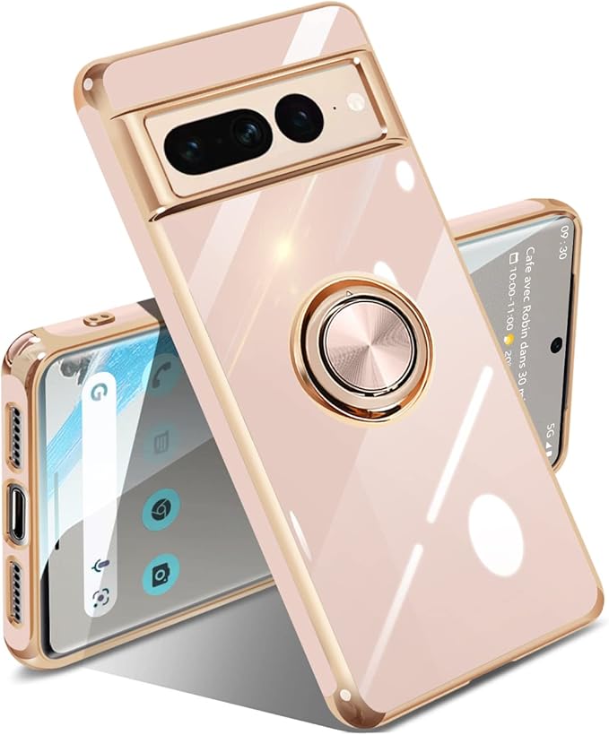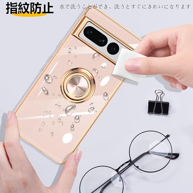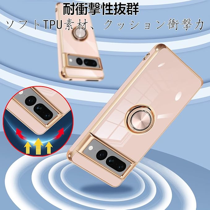 Google Pixel 7 Pro ケース リング付き リング 米軍MIL規格 人気 耐衝撃 ピクセル7 Pro カバー 携帯カバー TPU 軽量 スタンド機能 車載ホルダー対応 360 回転 指紋防止(ピンク)