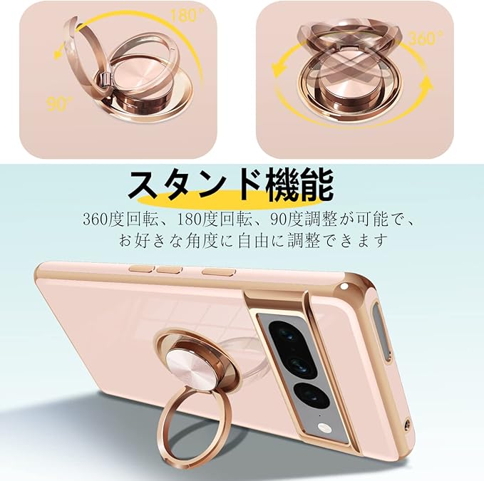 Google Pixel 7 Pro ケース リング付き リング 米軍MIL規格 人気 耐衝撃 ピクセル7 Pro カバー 携帯カバー TPU 軽量 スタンド機能 車載ホルダー対応 360°回転 指紋防止(ピンク)