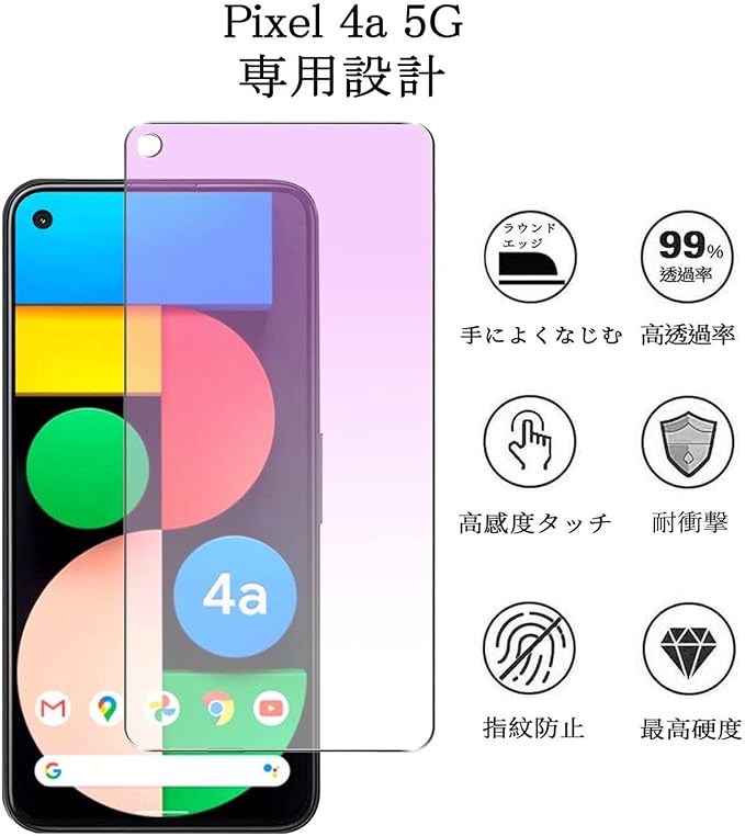 【ブルーライトカット】 Google Pixel 4a 5G 用 ガラスフィルム ブルーライト ピクセル 4a 5G フィルム ピクセル4a 5G 強化ガラス 液晶 保護フィルム 【気泡ゼロ/貼り付け簡単/高透過率/指紋防止/2枚セット】