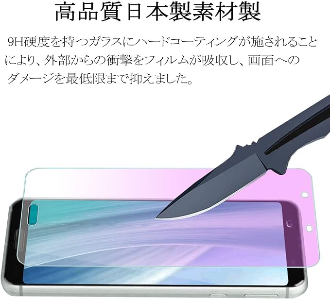 『 高品質日本製素材 』日本製旭硝子素材の採用、また硬度は業界最高レベルの9Hであり、カッタ一などの鋭利なものを当てたとしても損傷なく長らく使えます。特殊な飛散防止設計によ