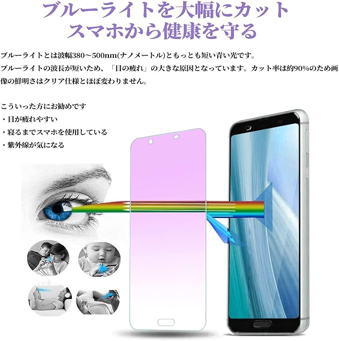 【ブルーライトカット】 AQUOS Sense3 plus ガラスフィルム ブルーライト アクオスセンス3 プラス SHV46 SH-RM11 強化ガラス 液晶保護フィルム 【指紋防止/干渉しない/貼り付け簡単/硬度9H/2枚セット】