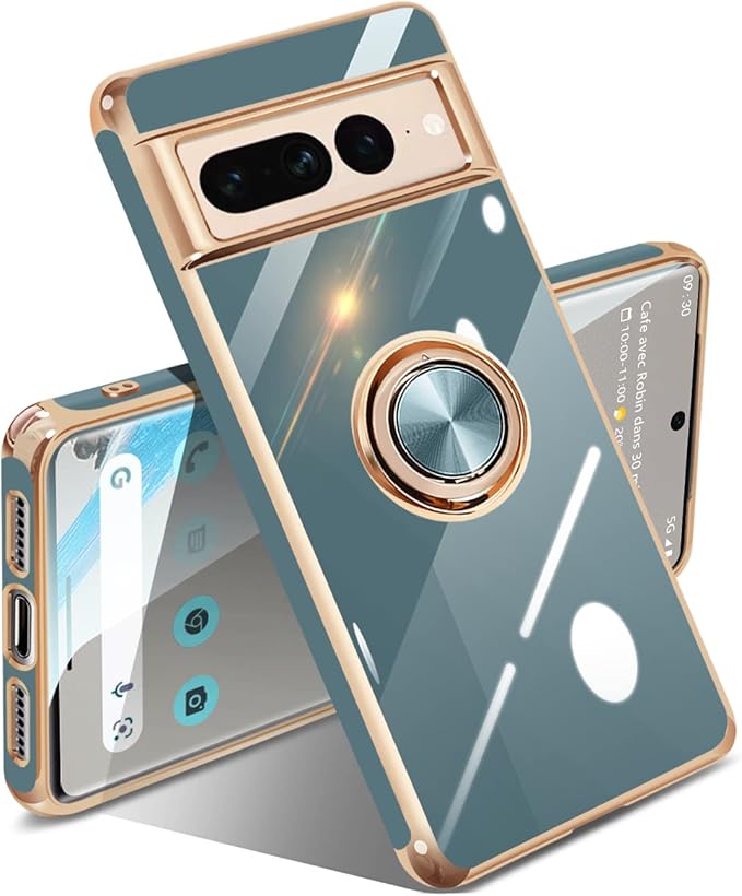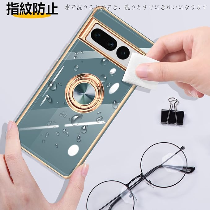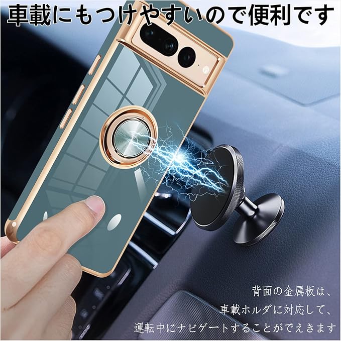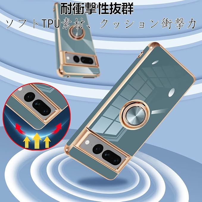 Google Pixel 7 Pro ケース リング付き リング 米軍MIL規格 人気 耐衝撃 ピクセル7 Pro カバー 携帯カバー TPU 軽量 スタンド機能 車載ホルダー対応 360 回転 指紋防止(グレー)