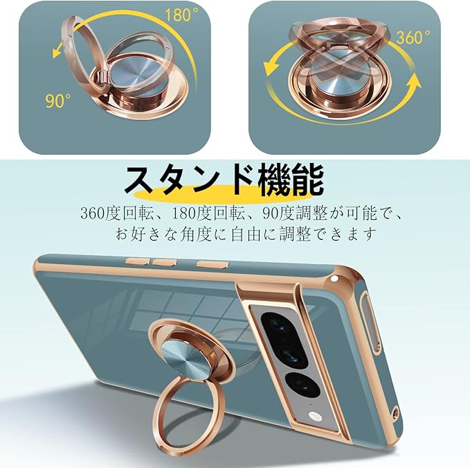 Google Pixel 7 Pro ケース リング付き リング 米軍MIL規格 人気 耐衝撃 ピクセル7 Pro カバー 携帯カバー TPU 軽量 スタンド機能 車載ホルダー対応 360°回転 指紋防止(グレー)
