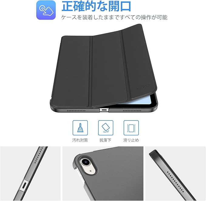 ProCase iPad 11世代/10世代 ケース iPad(A16)11インチ 2025/10.9インチ 2022通用 軽量 耐衝撃 三つ折り スタンド スマートカバー(シャドウブラック)