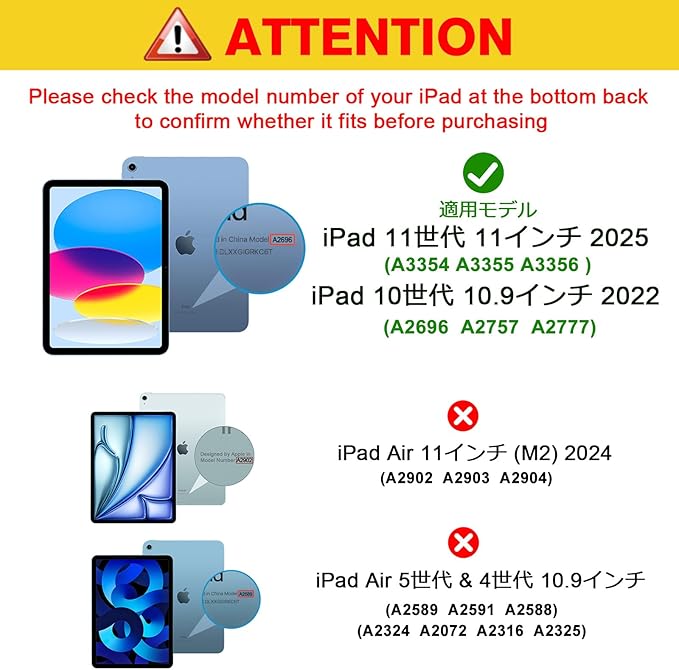 対応機種:iPad 第10世代 2022発売 10.9インチ(モデル番号:A2696 A2757 A2777)他のモデルには対応しません。 ご購入前にモデル番号をご確認いただきます。