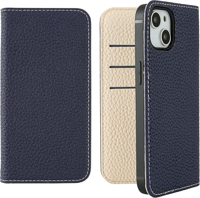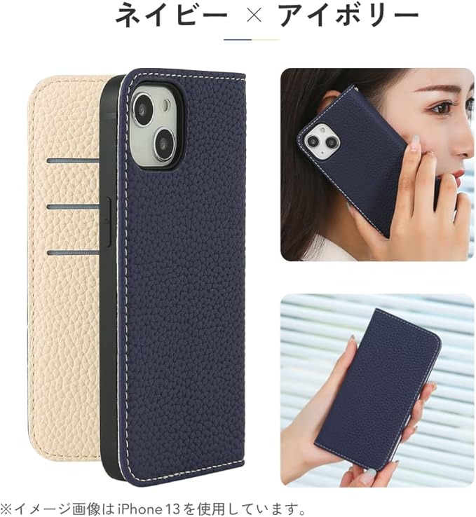 HanaRo iPhone14 ネイビー×アイボリー バイカラー 手帳型ケースくすみカラー iphone14ケース 手帳型 iphone14 ケース 携帯ケース
