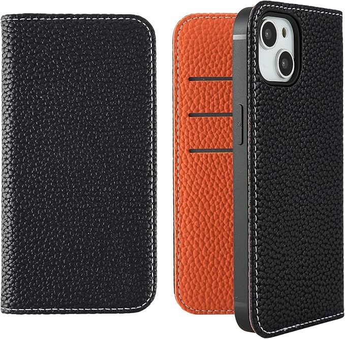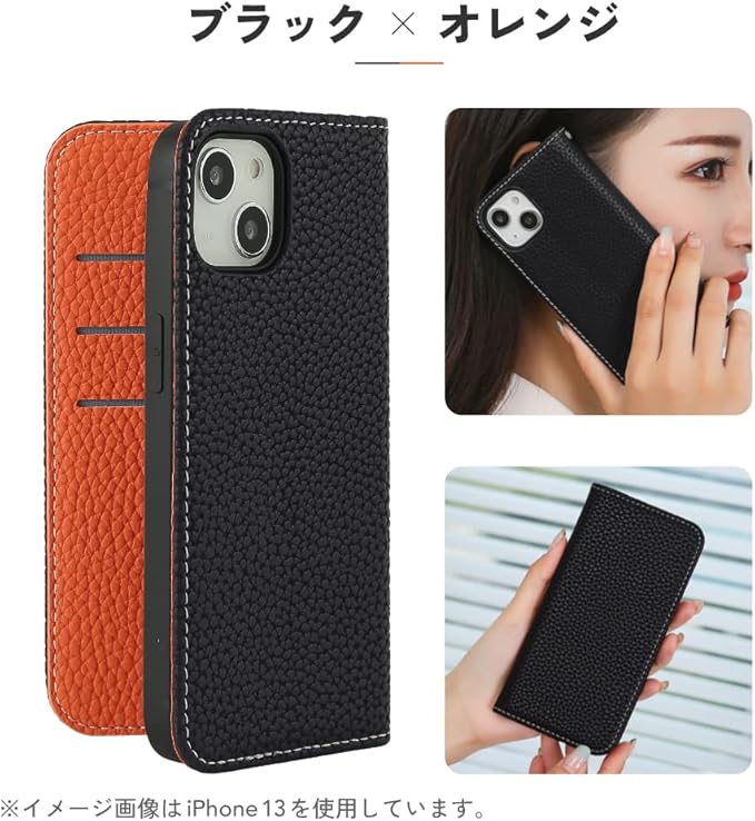 HanaRo iPhone14 ブラック×オレンジ バイカラー 手帳型ケースくすみカラー iphone14ケース 手帳型 iphone14 ケース 携帯ケース