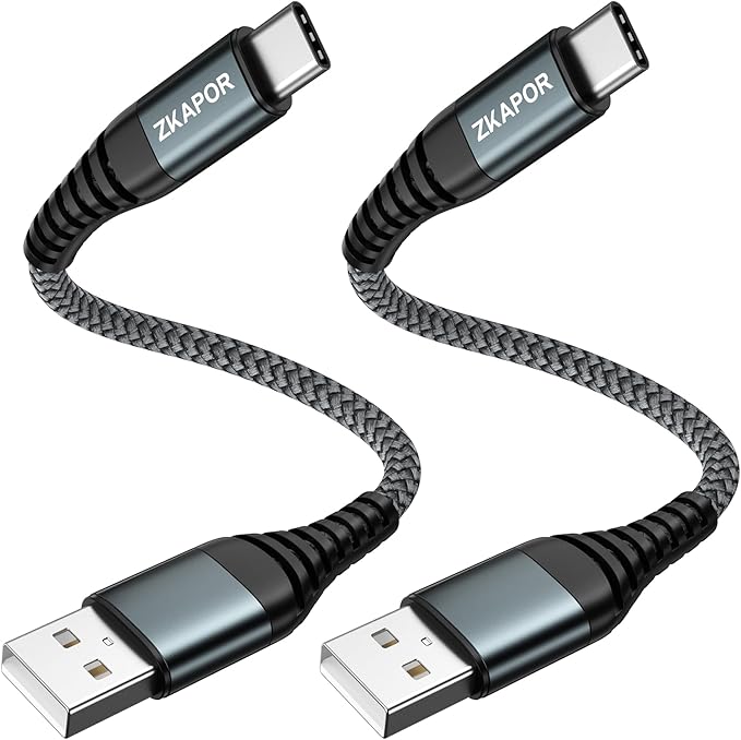 ZKAPOR USB Type C ケーブル短い【30CM/2本セット】 3A 急速充電 ケーブルタイプC ケーブル ナイロン編み USB-A to USB-C ケーブル Galaxy S22 /S21 /S20 /S10+ /S10 /S9+, Huawei P40 /P30 /P20 /P10, Google Pixel, Sony Xperia XZ /L1 - グレー