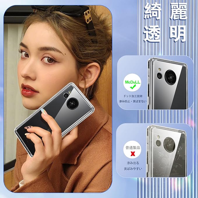 【全透明 耐衝撃性 】McDuLL AQUOS sense7 ケース クリア SH-53C SHG10 SH-M24ケース 2重構造 [TPU+PC] ストラップホール付き 薄型 軽量 落下防止 すり傷防止