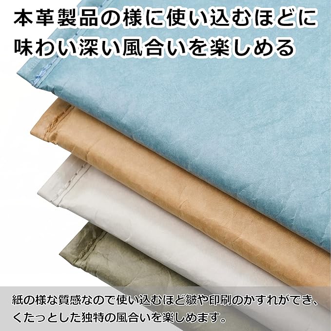 紙のような質感なので使い込むほど皺や印刷のかすれが出来、くたっとした独特の風合いを楽しめます。