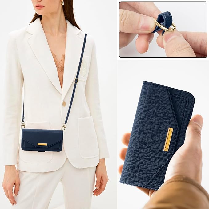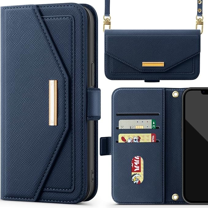NODALA iPhone 13 ケース 手帳型 アイフォン13 スマホケース 財布型 ショルダー あいふぉん13 携帯ケース 肩掛け 斜めがけ カバー 手帳型 小銭入れ カード収納 ロングストラップ 長さ調節可能 ミラー付き女性 おしゃれ 横置 ステント機能 折りたたみ 耐衝撃 PUレザート ブルー