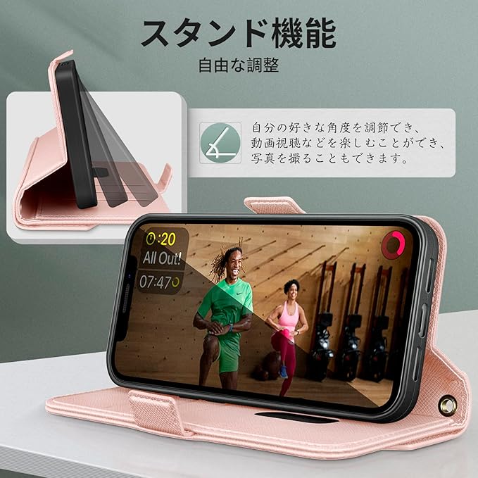 【便利な肩掛け】長さ調節可能なショルダーストラップ付き。ショルダーストラップの長さは簡単に調節できるので、用途に合わせて調整することができます。外出先で両手が空かないとき、肩や首にかけたり、手首につけたりして助けてもらいましょう。スマートフォンを紛失するリスクを減らすと同時に、着こなしを豊かにします。また、自宅で斜めにする必要がないときは、自由に