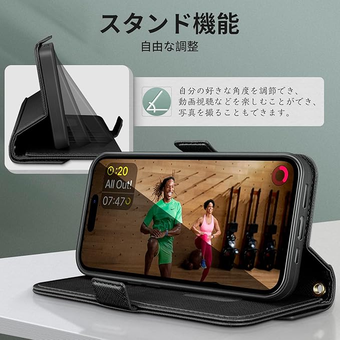 【便利な肩掛け】長さ調節可能なショルダーストラップ付き。ショルダーストラップの長さは簡単に調節できるので、用途に合わせて調整することができます。外出先で両手が空かないとき、肩や首にかけたり、手首につけたりして助けてもらいましょう。スマートフォンを紛失するリスクを減らすと同時に、着こなしを豊かにします。また、自宅で斜めにする必要がないときは、