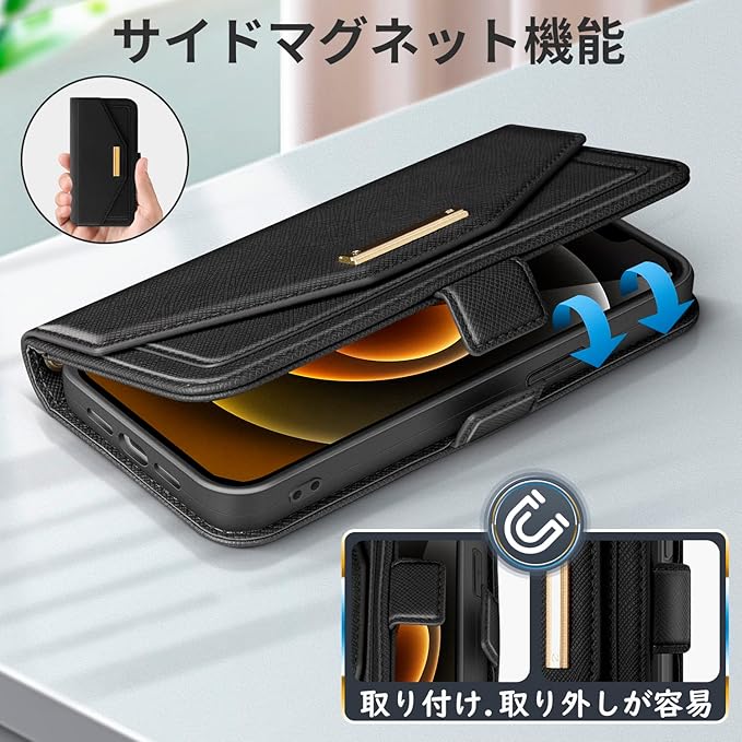 【対応機種】iPhone14pro。あいふぉん14proケース手帳型は、モデルやカラーが豊富です。クロスハッチの独特な質感、封筒のようなユニークな文字デザイン、質感のあるゴールドのメタルアクセサリーなど、スタイリッシュでシンプルなデザインに仕上げています。また、メイクアップミラーも付いているので、外出先でもメイクアップを確認でき、毎日の生活がより快適になります。ご注文の際は、対応機種と画面サイズをご確認の上、ご注文ください。