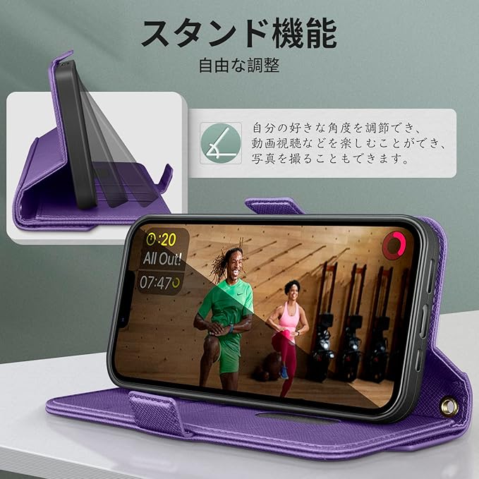 【便利な肩掛け】長さ調節可能なショルダーストラップ付き。ショルダーストラップの長さは簡単に調節できるので、用途に合わせて調整することができます。外出先で両手が空かないとき、肩や首にかけたり、手首につけたりして助けてもらいましょう。スマートフォンを紛失するリスクを減らすと同時に、着こなしを豊かにします。また、自宅で斜めにする必要がないときは、自由に取り外すこ