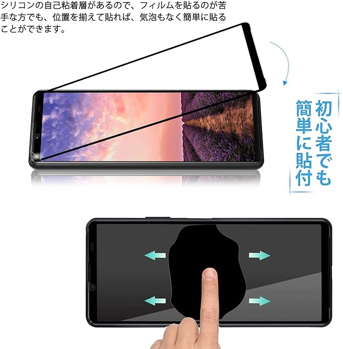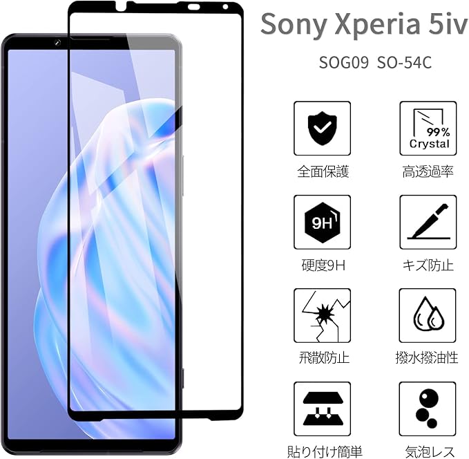 【2枚入り】 Xperia 5 IV 用 ガラスフィルム 高透過率 全面保護 SOG09 SO-54C フィルム エクスペリア5 マーク4 強化ガラス 液晶保護フィルム 【干渉しない/指紋防止/貼り付け簡単/気泡ゼロ】