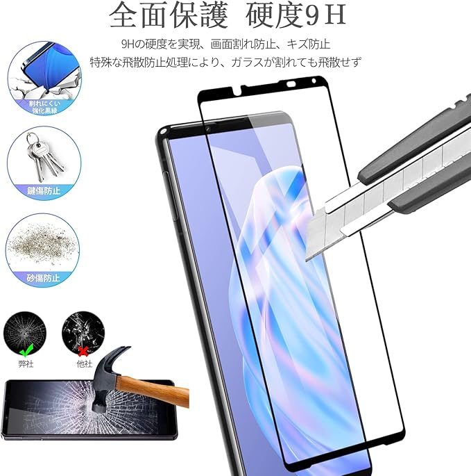 【高品質素材製、硬度9H】一般的なガラス保護フィルムよりも耐久性に優れたハードコーティ