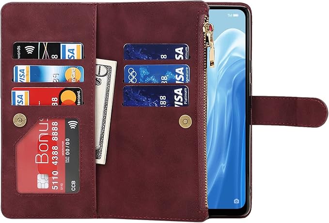 Eastwave OPPO Reno7 A ケース OPPO Reno 7A 縄掛けケース Reno7A 手帳型 財布型 ICカード コインポケット ストラップ付き カード 収納 小銭入れ ファスナーポケット付き PUレザー 6色レッド