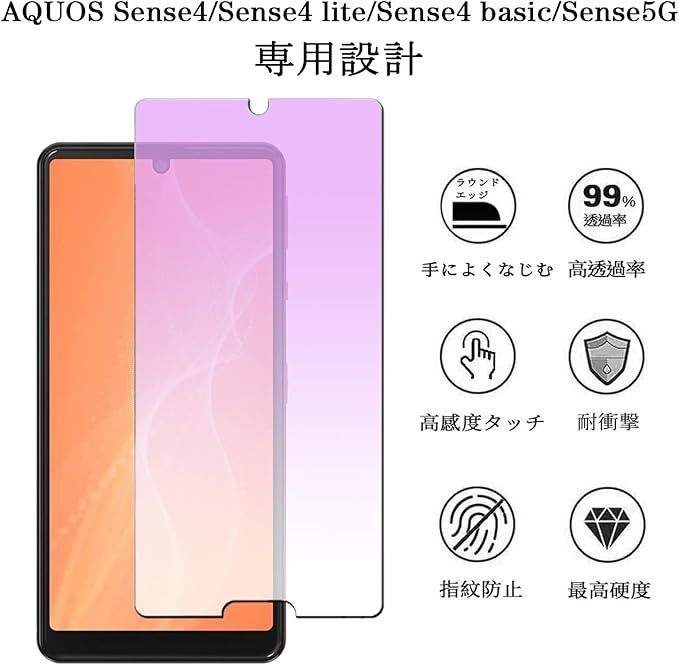 【ブルーライトカット】 AQUOS Sense4 / AQUOS Sense4 lite 用 ガラスフィルム ブルーライト AQUOS Sense4 basic/AQUOS Sense5G 用 フィルム SH-41A SH-53A SH-M15 SHG03 強化ガラス アクオスセンス4 液晶 保護フィルム