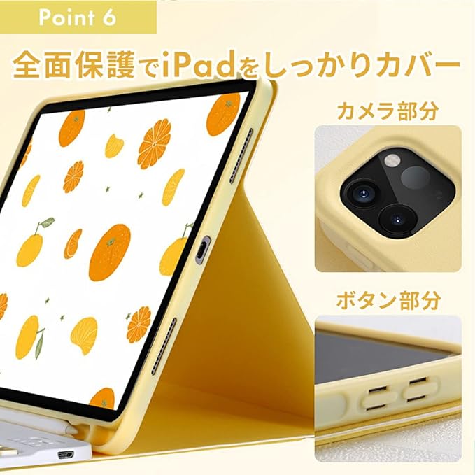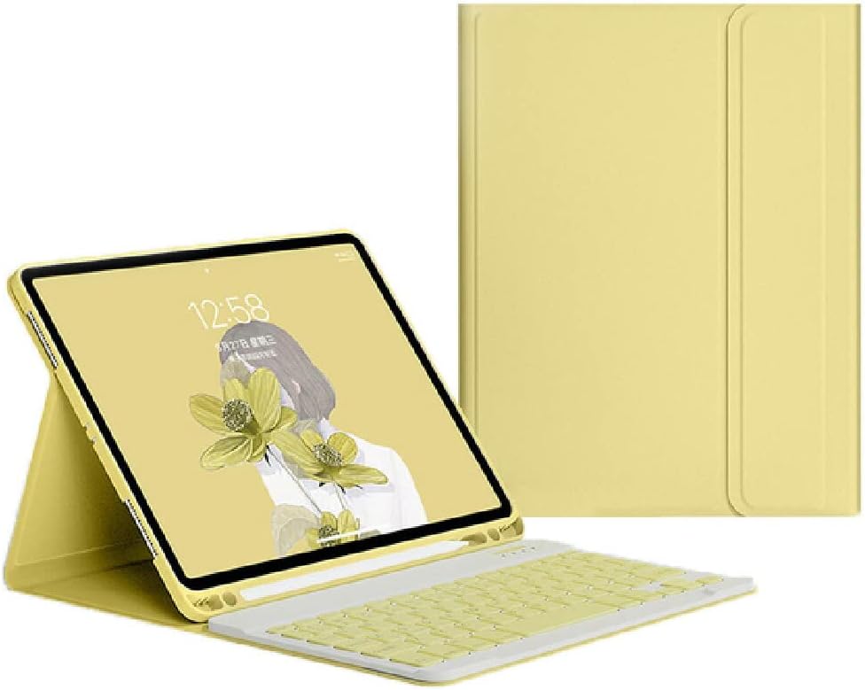 ホビナビ iPad キーボード付きケース iPad Pro12.9 インチ 第6世代 ペン収納 ペンシル タブレット 軽量 オートスリープ スタンド 英語配列 脱着式 Bluetooth イエロー