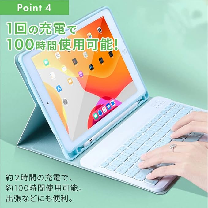 【極薄軽量設計・ペンl収納付き】Apple pencilの収納可能なキーボード付きケースiPad・キーボード・ペンシルをスマートに収納して、セットで持ち運びが可能ペンの紛失も防ぎます。従来より約20%軽量化を実現した極薄軽量設計。軽量で持ち運びしやすいので鞄の中に入れても、かさばらず持ち運びにおすすめなキーボードケースです