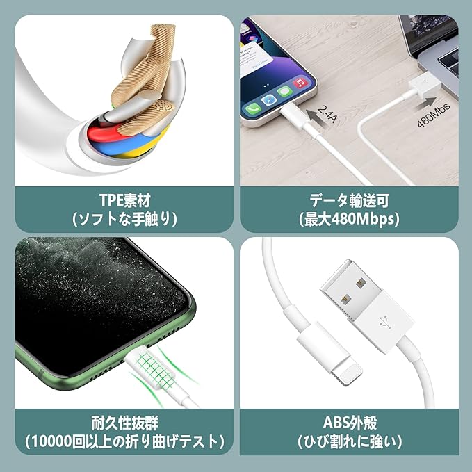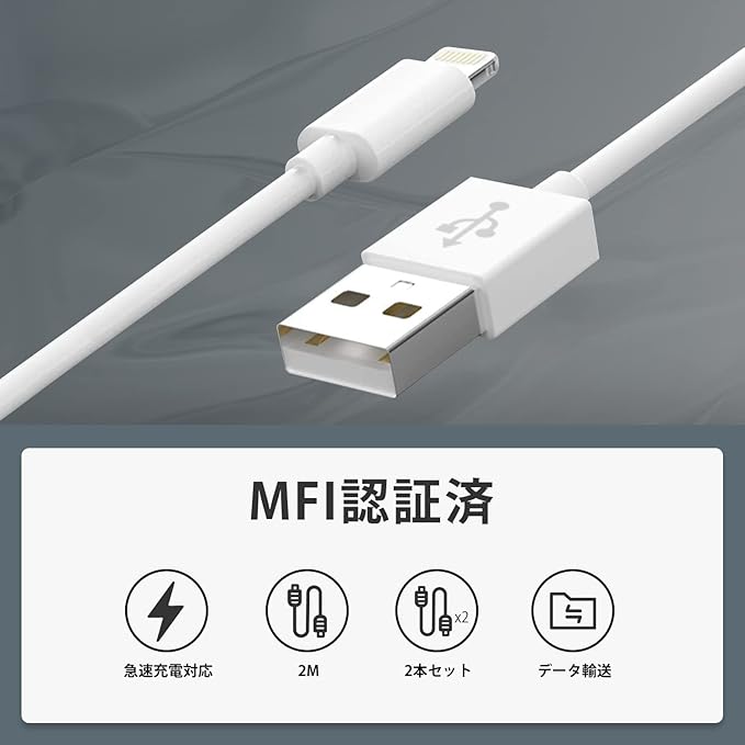 2023新版 iPhone 充電ケーブル iphone 充電器 純正品質 Lightningケーブル MFI認証 2M 2本セット アイフォン充電コード ライトニングケーブル 2.4A急速充電 高速データ同期 超高耐久 iPhone14/iPhone14ProMax/iPhone13/13Pro/12/11iPadなどに対応