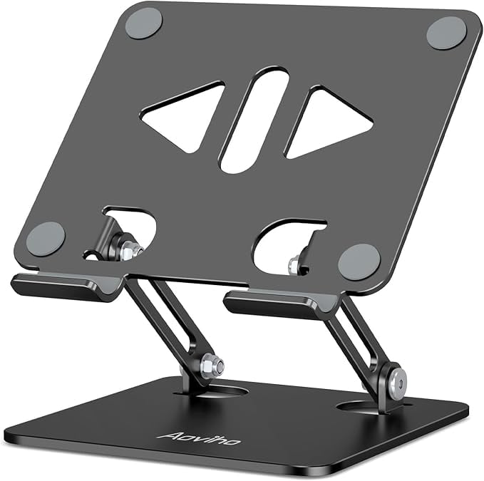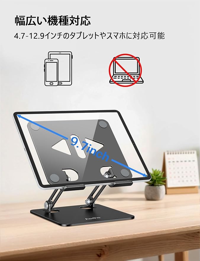 3、【無段階調整可能&人間工学】:人間工学設計に基づき、Aovihoスタンドは無段階調整することができ、一般的には0°ー180°回転しても大丈夫で、お好きのままに、タブレットススタンドの最優選高度と角度で調整されます。