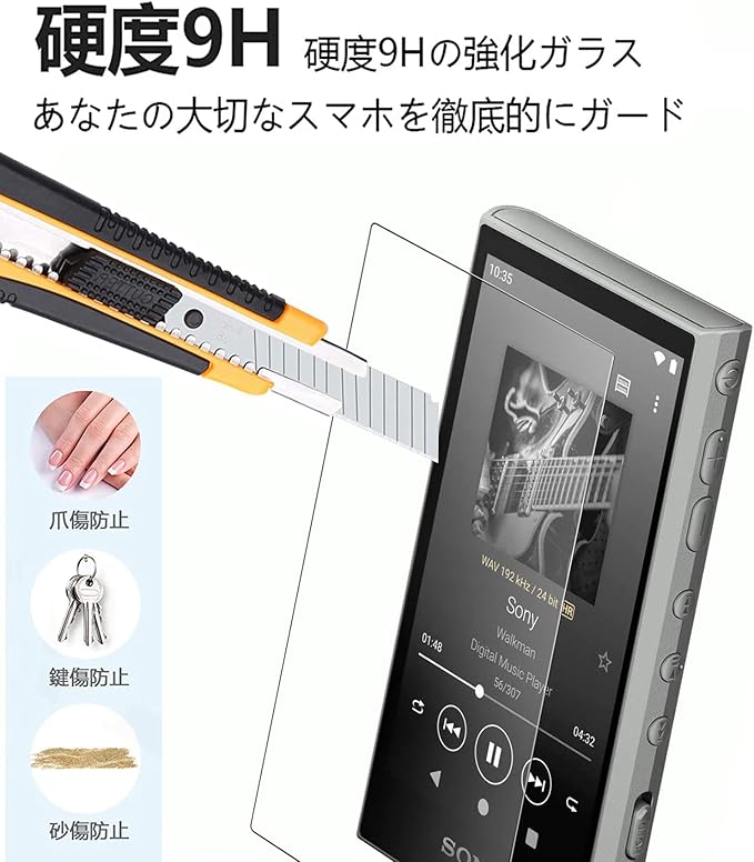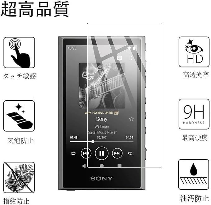 【2枚セット】For SONY NW-A300/A306/A307 ガラスフィルム 【ZXZone】 NW-A300/A306/A307 フィルム 硬度9H 高透過率 飛散防止 強化ガラス 耐衝撃 液晶保護フィルム 指紋防止 気泡ゼロ 自動吸着 貼り付け簡単