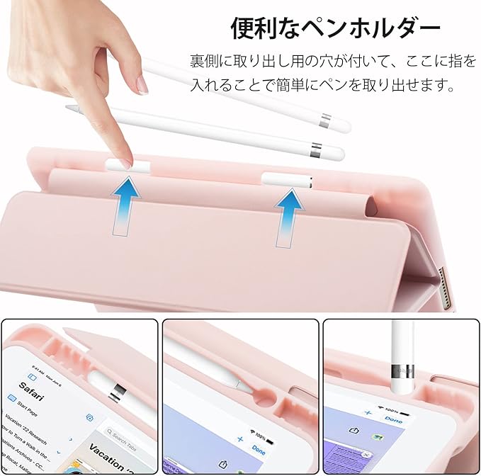 【ペンホルダー 付き】:収納保護用のペンホルダーと仮置き用のペン立て機能付き、 使用や収?は便利て、 保護機能もある、ペンの紛失を防止します。