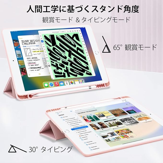 Wonzir iPad 第9世代 ケース iPad 10.2 ケース (2021/2020/2019モデル) ペン収納 スタンド機能 iPad 10.2 インチ 保護カバー 軽量 薄型 シンプル 三つ折りスタンド 全面保護型 傷つけ防止 iPad 第8世代 手帳型 iPad 第7世代 便利なペンホルダー付き (ピンク, iPad 10.2)